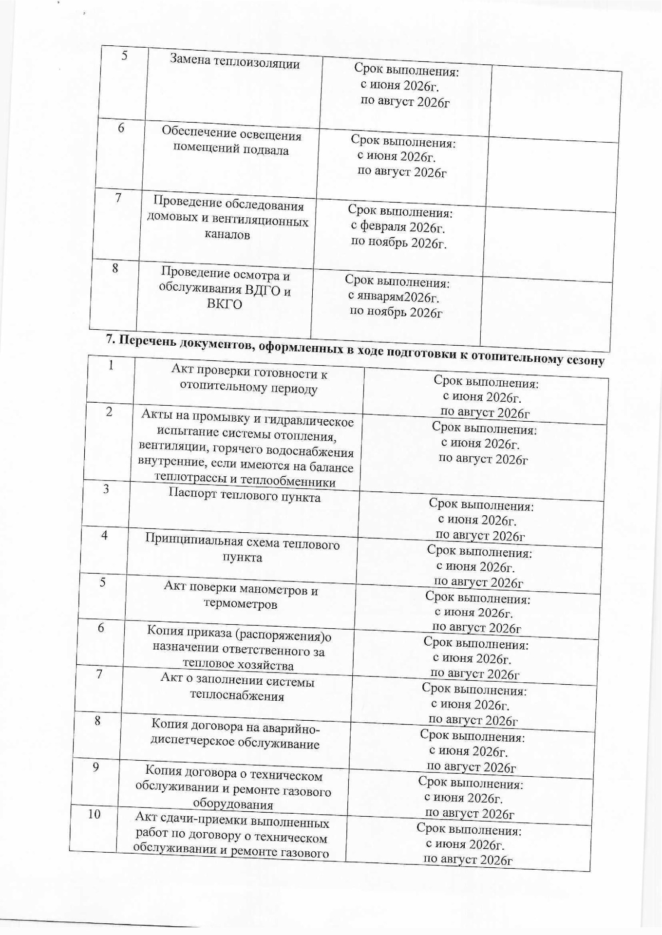 Планы подготовки к отопительным сезонам