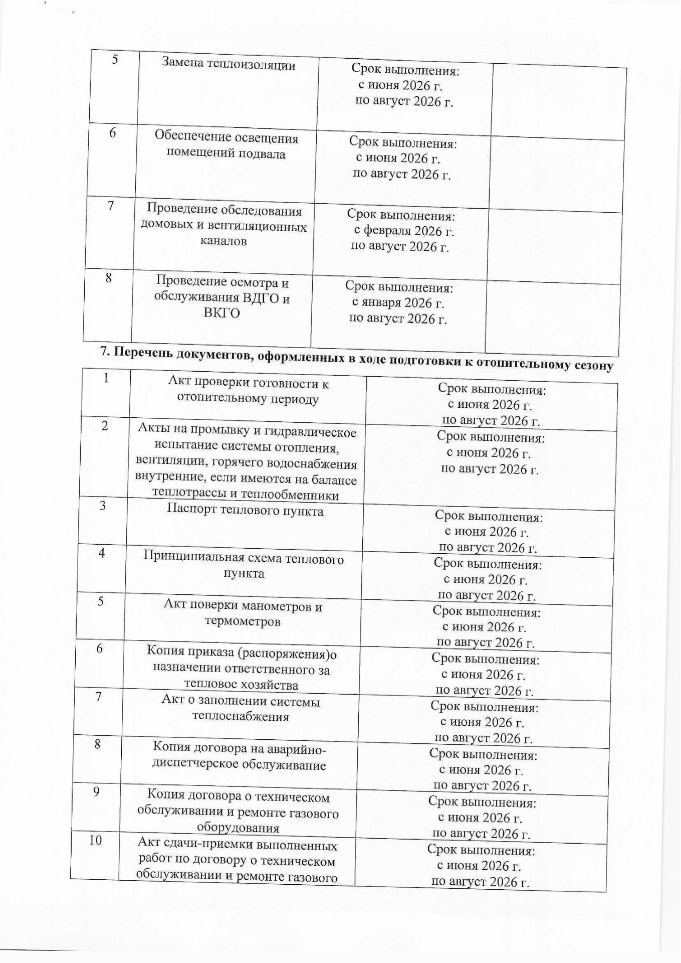 Планы подготовки к отопительным сезонам