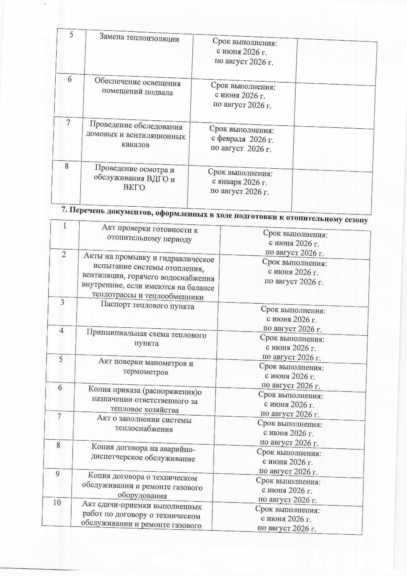 Планы подготовки к отопительным сезонам