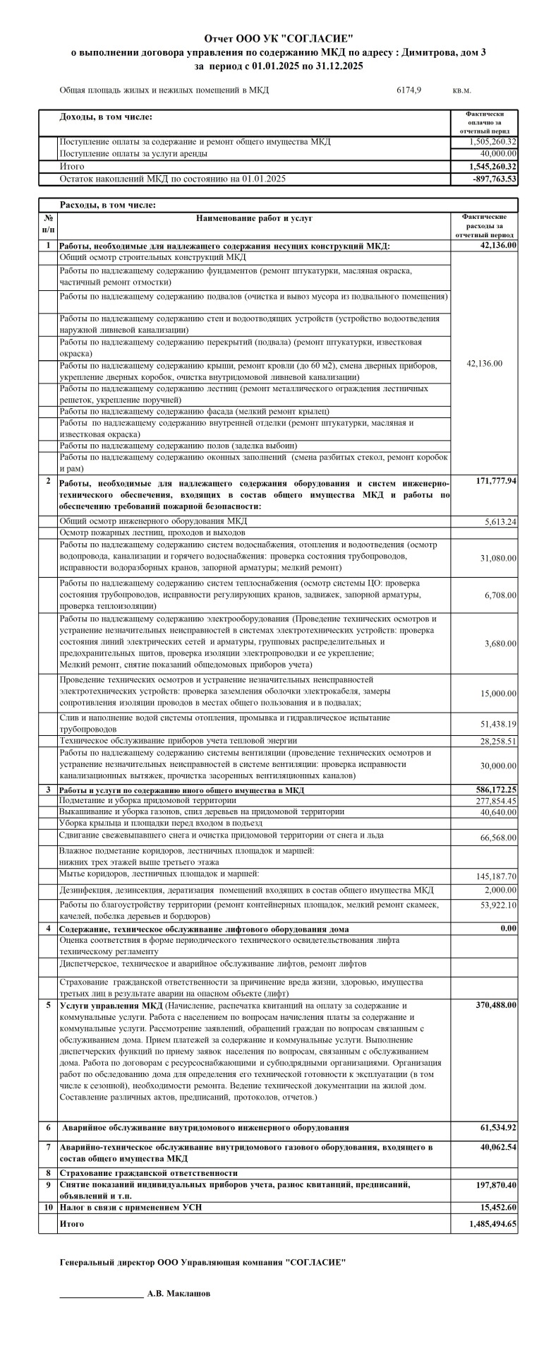 Димитрова 1 Отчет за 2025 год
