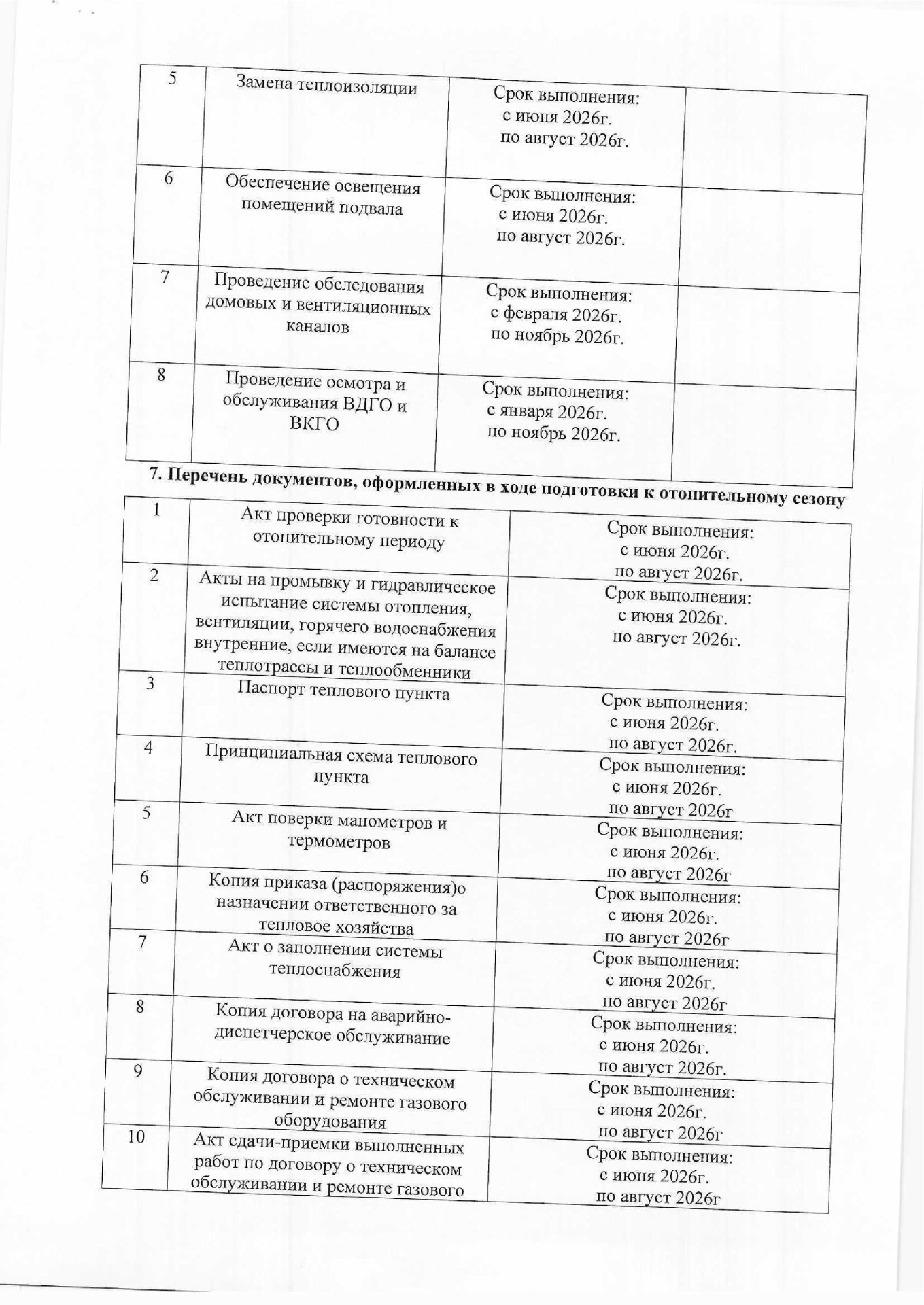 Планы подготовки к отопительным сезонам