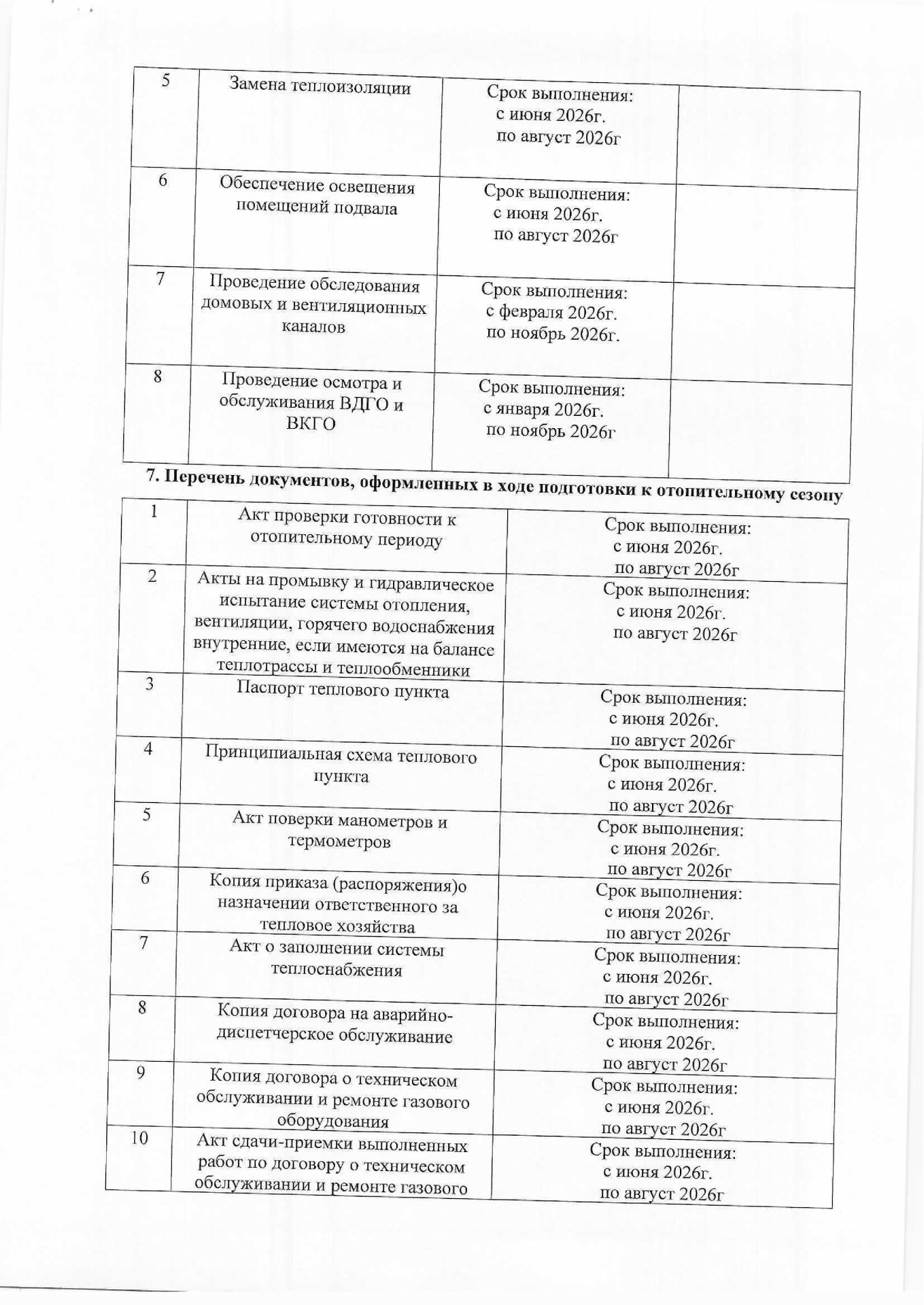 Планы подготовки к отопительным сезонам