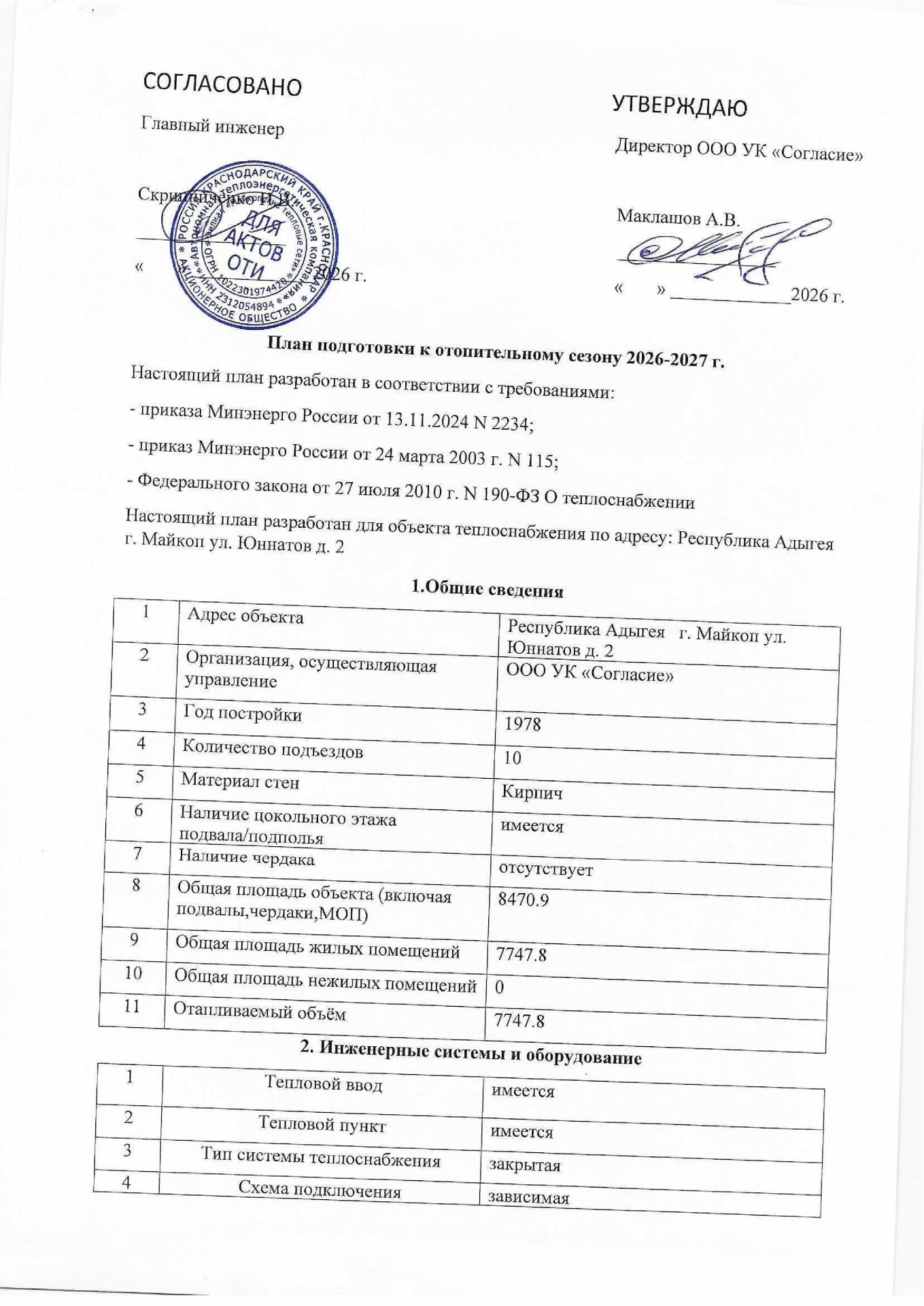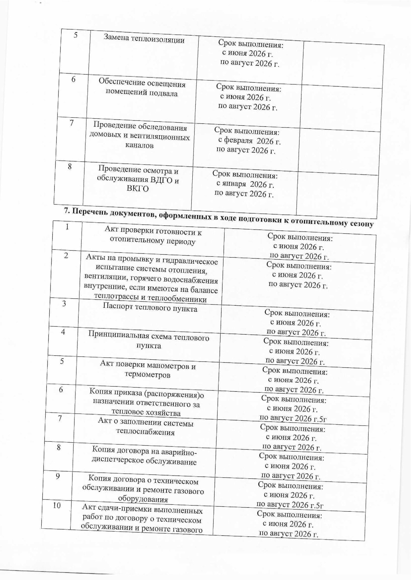Планы подготовки к отопительным сезонам