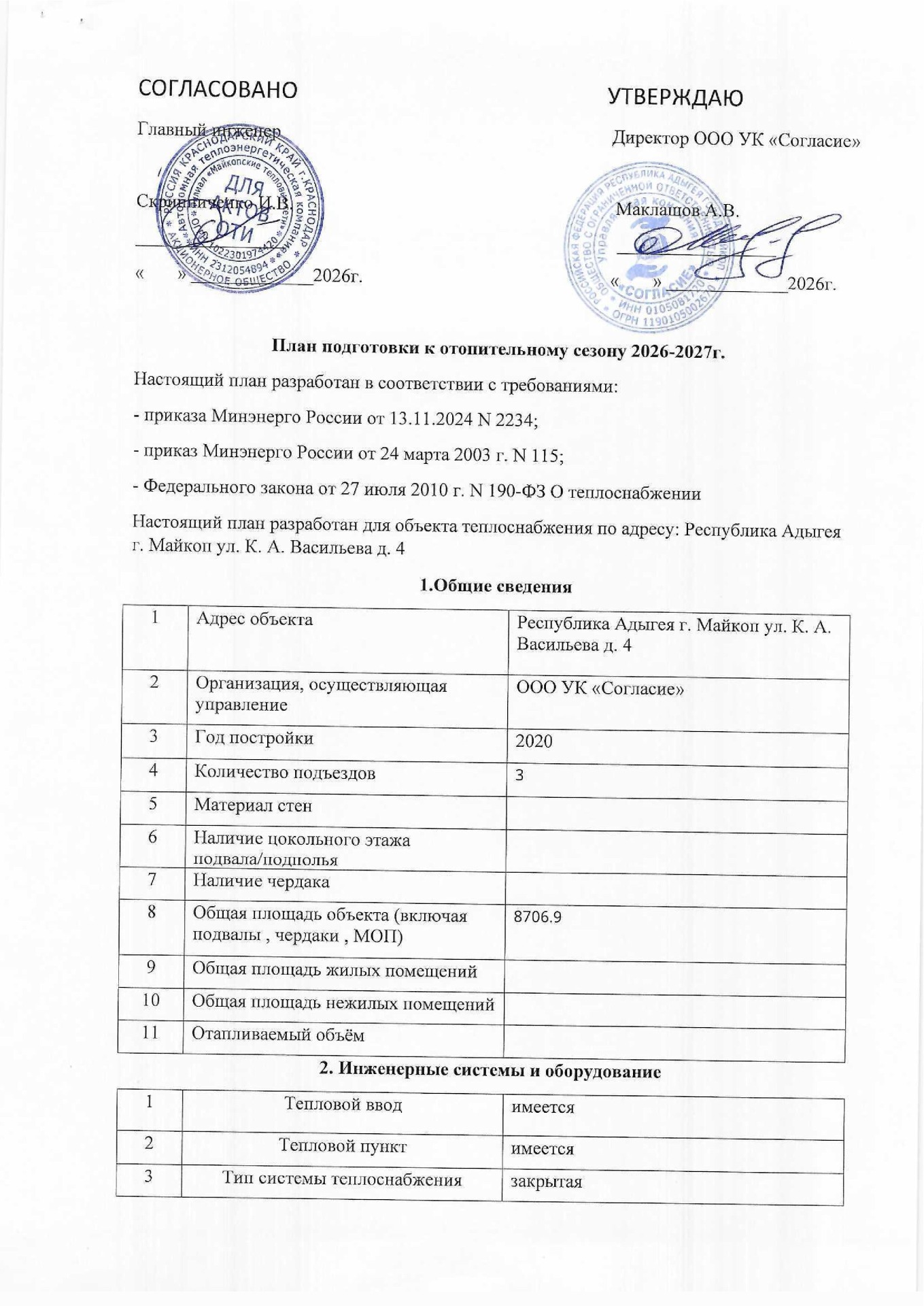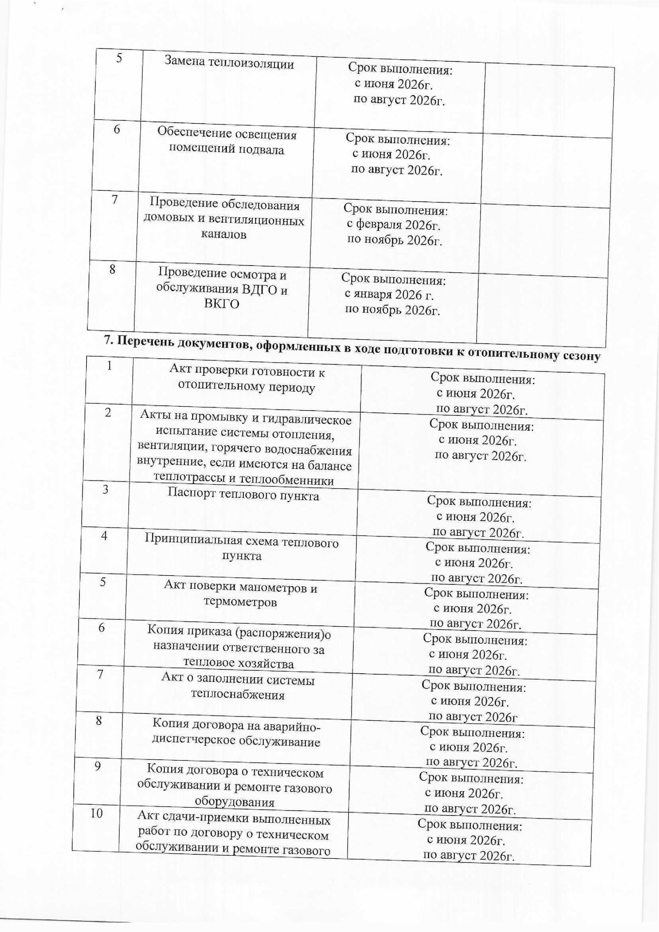 Планы подготовки к отопительным сезонам